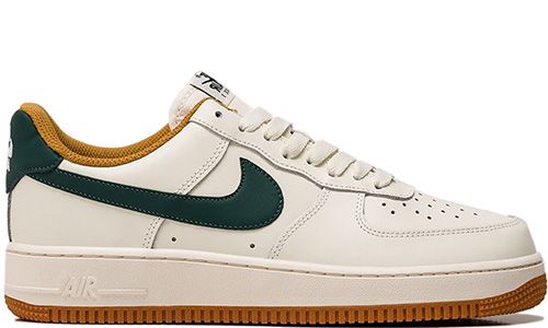 Светлые кроссовки в бело-зелено-коричневой гамме на базе классического силуэта Air Force 1. Свежее и натуральное цветовое сочетание для повседневного стиля.